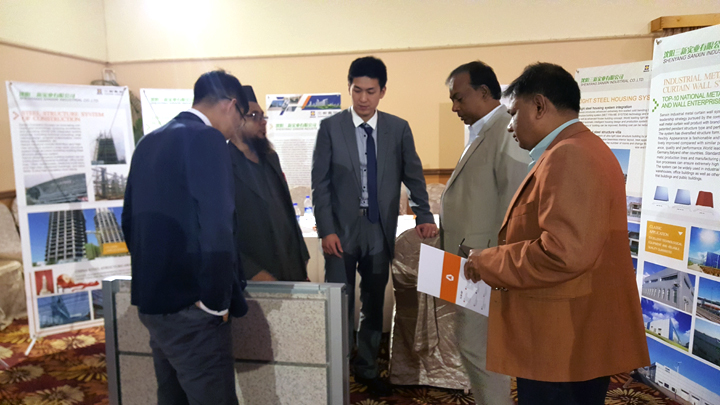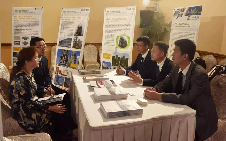 在推介會上,來自中孟的近70位企業(yè)代表就孟加拉國市場拓展、企業(yè)產(chǎn)品和項目合作進行了面對面的交流對接,涉及基建、能源、電力等領(lǐng)域。會議期間,三新集團展位受到廣泛關(guān)注。獨具特色的公共建筑、民用建筑及工業(yè)建筑產(chǎn)品吸引了眾多孟加拉國客戶及廠商,并進行了咨詢及多場洽談會晤,簽訂了多項合作及銷售協(xié)議。同時,公司還與中國電建、中國能建、中國石油、中國東北電力第三工程有限公司、中成進出口股份有限公司等國內(nèi)知名廠商進行了合作洽談,強強聯(lián)合,共同助力開拓孟加拉市場。