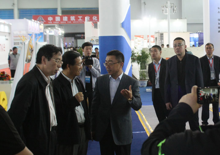 展會(huì)期間,國(guó)家住房城鄉(xiāng)建設(shè)部建筑節(jié)能與科技司副司長(zhǎng)郭理橋、國(guó)家住建部科技與產(chǎn)業(yè)化發(fā)展中心副主任文林峰、國(guó)家住建部科技與產(chǎn)業(yè)化發(fā)展中心處長(zhǎng)劉美霞、遼寧省住房和城鄉(xiāng)建設(shè)廳廳長(zhǎng)魏舉峰、副廳長(zhǎng)李海洋、沈陽(yáng)市副市長(zhǎng)于振明、盤(pán)錦市人民政府副市長(zhǎng)白光及各省市建委相關(guān)負(fù)責(zé)人等領(lǐng)導(dǎo)蒞臨博覽會(huì)現(xiàn)場(chǎng)參觀指導(dǎo),并駐足三新集團(tuán)展位。各位領(lǐng)導(dǎo)饒有興致的觀看我公司裝配式建筑展品,對(duì)我公司的裝配式建筑系統(tǒng)都給予很高的評(píng)價(jià),并與三新集團(tuán)總經(jīng)理洪長(zhǎng)禧親切交談。
