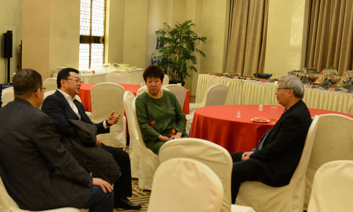 ▲洪長禧會長與杭蕭鋼構副總裁、著名專家方鴻強交流