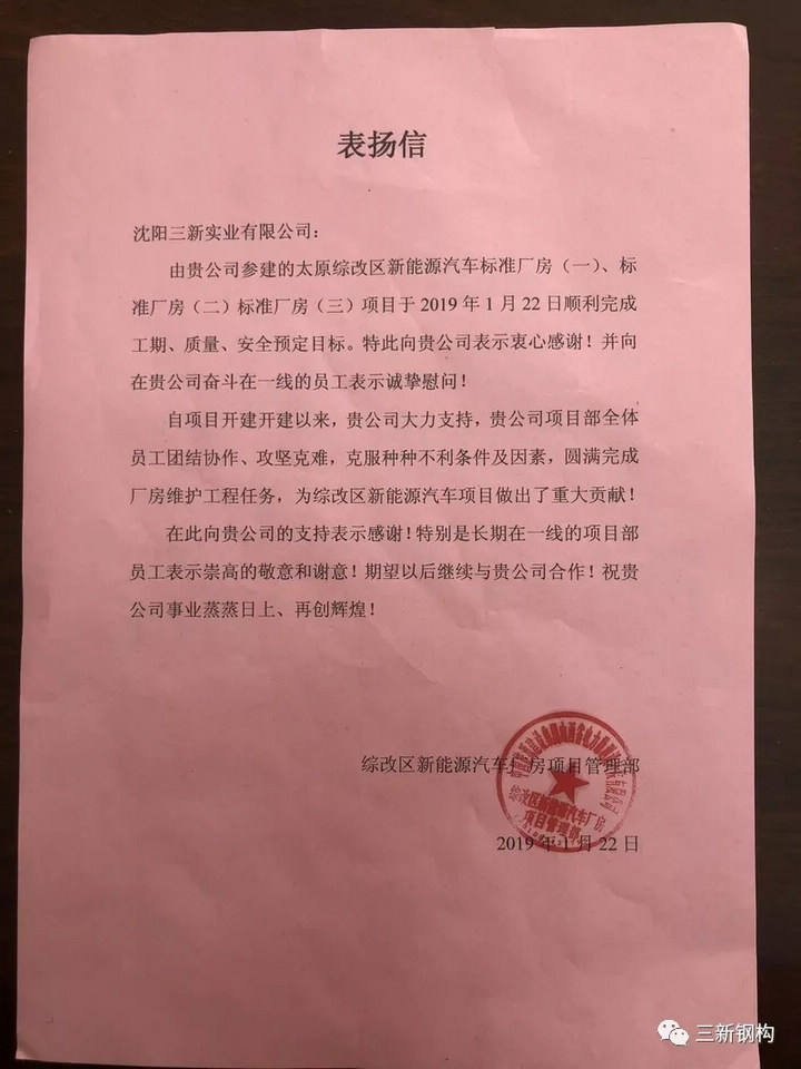 項目經(jīng)理邢玉寶代表工程項目部作太原項目總結(jié)報告。2018年,在公司上下鼎力支持下,工程項目部發(fā)揚(yáng)打硬仗能吃苦的精神,克服任務(wù)重、工期緊、要求高等困難,圓滿高質(zhì)量按工期完成任務(wù),在工程施工技術(shù)管理方面取得可喜的進(jìn)步和成績,受到山西綜改區(qū)新能源汽車項目管理部的好評,并致感謝信。