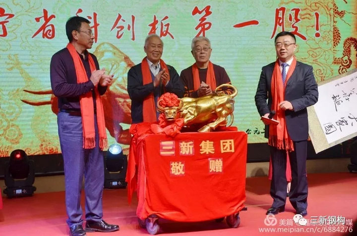 本屆校友會的承辦方,沈陽三新集團總經(jīng)理,校友會副會長,本屆年會籌備組組長洪長禧先生代表沈陽校友特為宗會長及芯源微電子贈送銅牛一尊!祝芯源微電子財源廣進,牛市長紅!