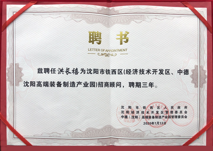 日前,我公司洪長禧總經(jīng)理被聘任為沈陽市鐵西區(qū)(經(jīng)濟(jì)技術(shù)開發(fā)區(qū)、中德沈陽高端裝備制造產(chǎn)業(yè)園)招商顧問。自從入駐沈陽以來,不忘初心、不辱使命,勇于創(chuàng)新,多年來為經(jīng)濟(jì)技術(shù)開發(fā)區(qū)、鐵西經(jīng)濟(jì)社會(huì)實(shí)現(xiàn)高質(zhì)量發(fā)展,為鐵西區(qū)老工業(yè)基地全面振興做出了應(yīng)有的貢獻(xiàn)!尤其是積極參與謀劃中德沈陽高端裝備制造產(chǎn)業(yè)園的發(fā)展,并成為入駐園區(qū)龍頭企業(yè)。相信隨著產(chǎn)業(yè)園的蓬勃發(fā)展,我公司會(huì)如虎添翼,更上一層樓!