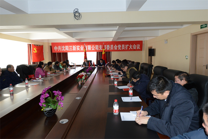 2014年12月13日上午9:30,中共沈陽(yáng)三新實(shí)業(yè)有限公司支部委員會(huì)黨員擴(kuò)大會(huì)議在廠(chǎng)區(qū)綜合辦公樓四樓會(huì)議室召開(kāi)。會(huì)議公布了本年展黨員名單,新黨員進(jìn)行了表態(tài)發(fā)言;會(huì)議討論并確定了明年發(fā)展黨員計(jì)劃;全體參會(huì)人員一同學(xué)習(xí)了黨章內(nèi)容。黨支部書(shū)記洪長(zhǎng)禧總經(jīng)理以“在公司工作中如何發(fā)揮黨員先進(jìn)模范帶頭作用“為題做了主旨發(fā)言。最后由黨支部書(shū)記于東云董事長(zhǎng)領(lǐng)誓,新黨員向黨旗宣誓并進(jìn)行佩戴黨徽儀式。通過(guò)本次會(huì)議,全體參會(huì)人員受到了一次愛(ài)黨教育及思想的洗禮。