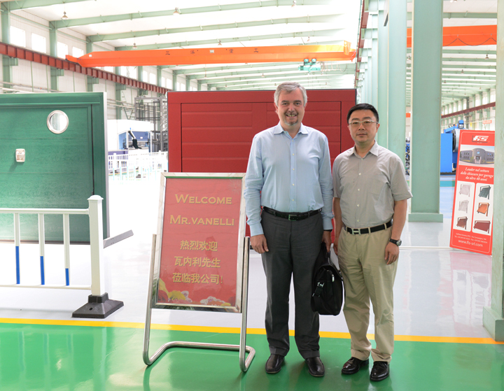 2015年7月10日,應(yīng)公司邀請(qǐng),世界電梯領(lǐng)跑者意大利沃迪克集團(tuán)公司高管瓦內(nèi)利先生訪問我公司。瓦內(nèi)利先生在公司總經(jīng)理洪長(zhǎng)禧先生的陪同下考察了公司柔性金屬板材生產(chǎn)車間,客人對(duì)公司先進(jìn)的生產(chǎn)線及其生產(chǎn)管理由衷的滿意。之后于東云董事長(zhǎng)與瓦內(nèi)利先生進(jìn)行了親切友好的會(huì)談。