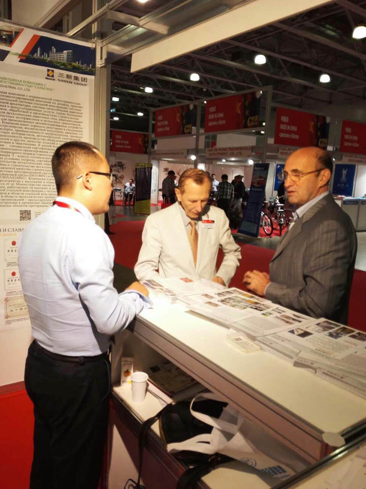 .弗拉季斯拉夫(專家委員會主席,經(jīng)濟科學(xué)博士,普京總統(tǒng)的兄長)專程來到三新公司展位,與于東云董事長進行了會談,并詳細詢問了公司及產(chǎn)品情況,對我公司在俄羅斯的市場發(fā)展前景給予充分的肯定。展會的反應(yīng)也充分證明了這一點,憑借先進的技術(shù)裝備及過硬的質(zhì)量,我們對進軍俄羅斯市場充滿信心。